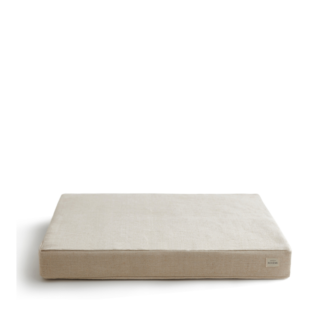 The cushion has been made with a sturdy foam inner and a removable outer layer, which is a jute and organic cotton blend. Durable and thoughtfully designed with a handy carry handle and hidden zip.